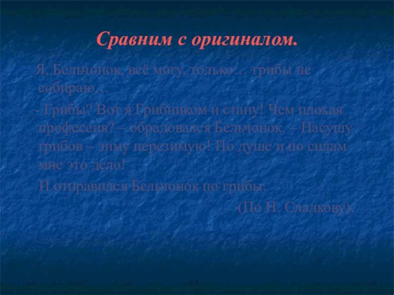 - Грибы? Вот я Грибником и стану! Чем плохая профессия? – обрадовался Бельчонок. – Насушу грибов – зиму перезимую! По душе и по силам мне это дело!