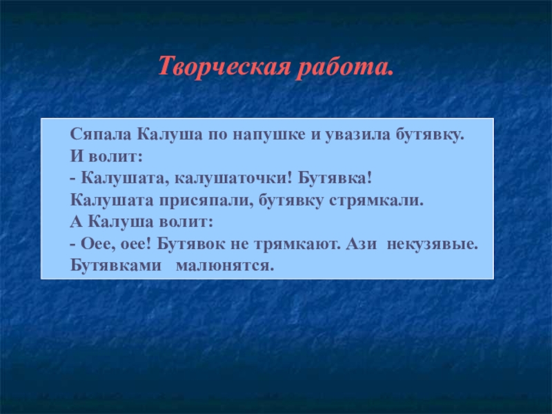 Слайд 12 Сяпала Калуша по напушке и увазила бутявку.