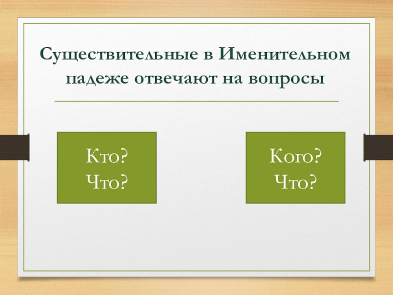 Слайд 12Существительные в Именительном падеже отвечают на вопросы