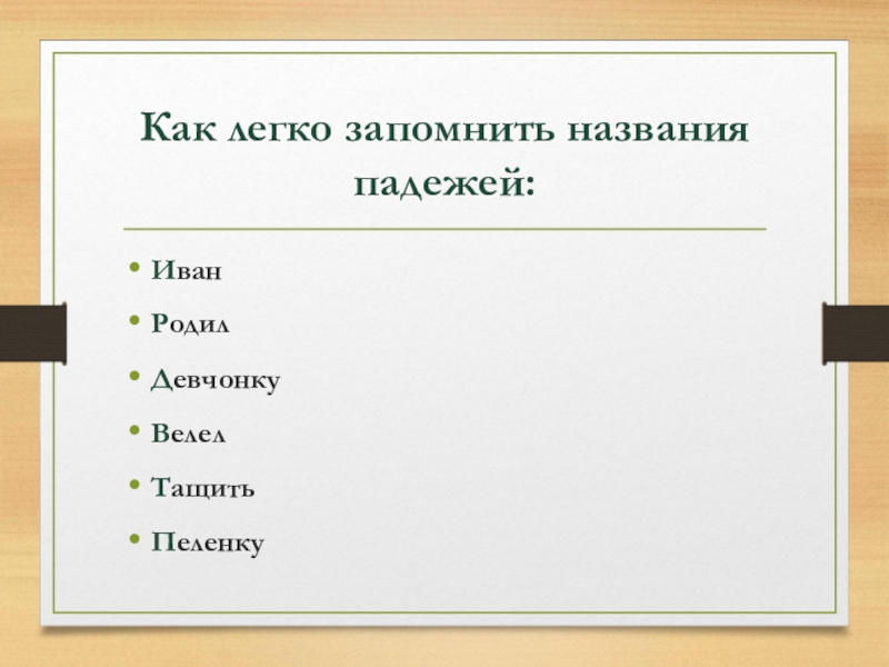 Как легко запомнить названия падежей:ИванРодилДевчонку Велел Тащить Пеленку