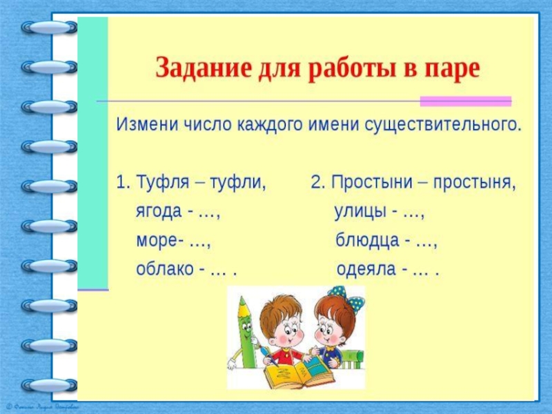 первый столбик запишите имена существительные в единственном числе, а во второй столбик имена существительные во множественном числе.