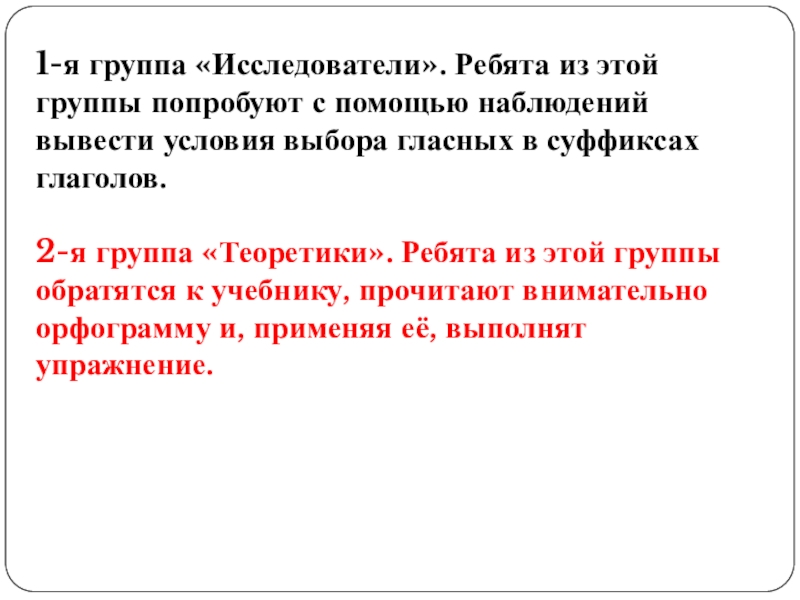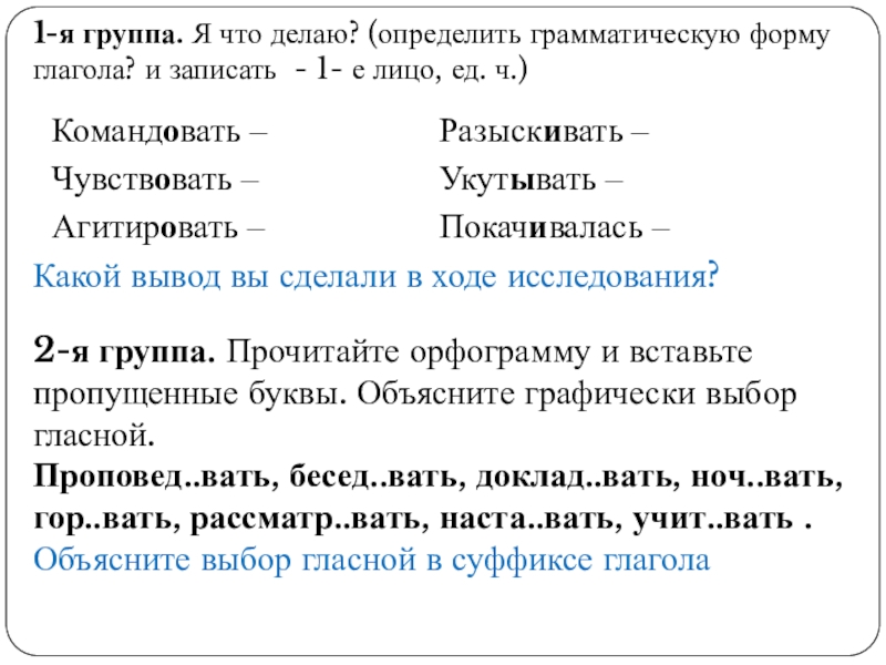 2-я группа. Прочитайте орфограмму и вставьте пропущенные буквы. Объясните графически выбор гласной.