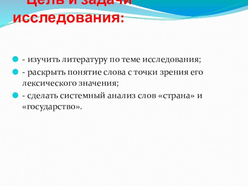 Слайд 3 Цель и задачи исследования: