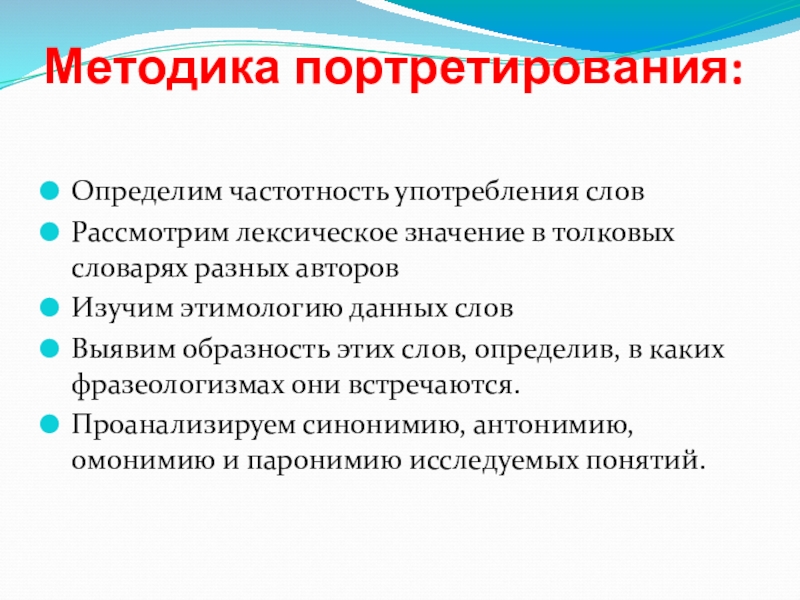 Слайд 4Методика портретирования: