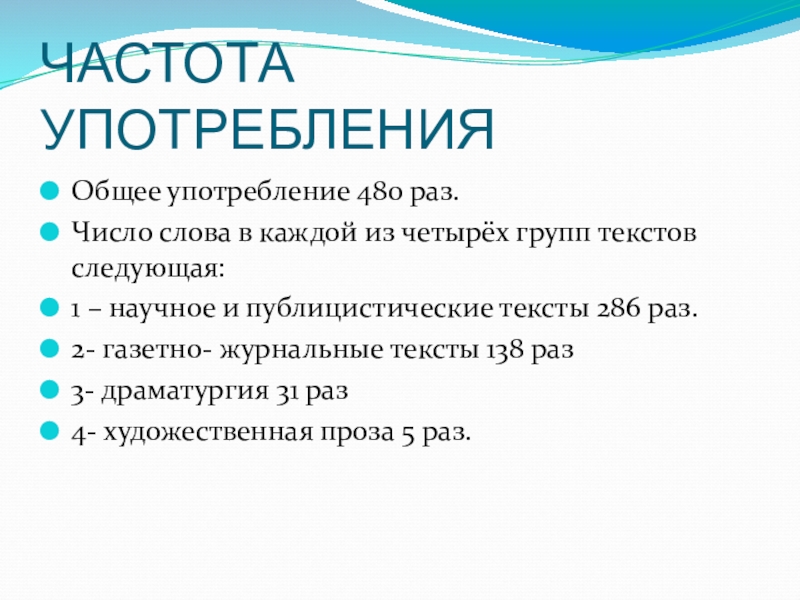 Слайд 19ЧАСТОТА УПОТРЕБЛЕНИЯ