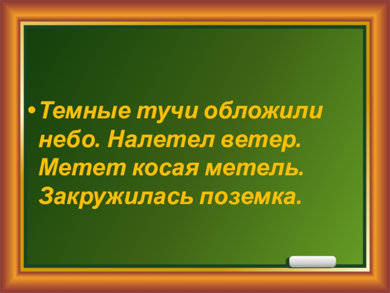 Темные тучи обложили небо. Налетел ветер. Метет косая метель. Закружилась поземка.