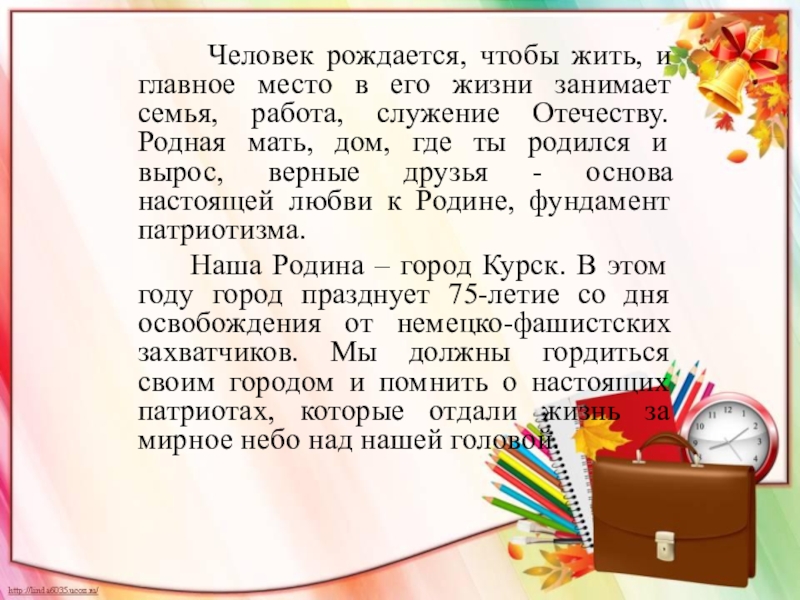 Это сайт презентаций, где можно хранить и обмениваться своими презентациями, докладами, проектами, шаблонами в формате PowerPoint с другими пользователями. Мы помогаем школьникам, студентам, учителям, преподавателям хранить и обмениваться учебными материалами.