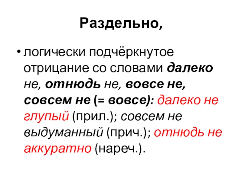 логически подчёркнутое отрицание со словами далеко не, отнюдь не, вовсе не,
