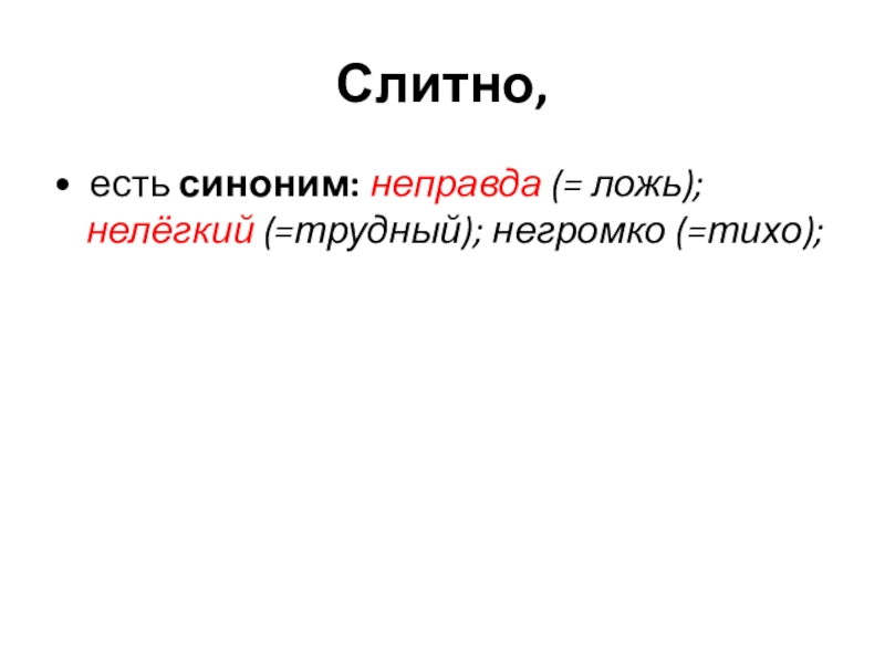 • есть синоним: неправда (= ложь); нелёгкий (=трудный); негромко (=тихо);
