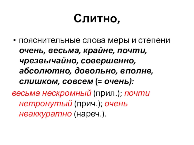 пояснительные слова меры и степени очень, весьма, крайне, почти, чрезвычайно, совершенно,