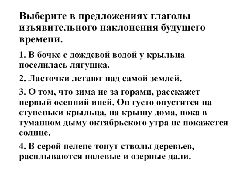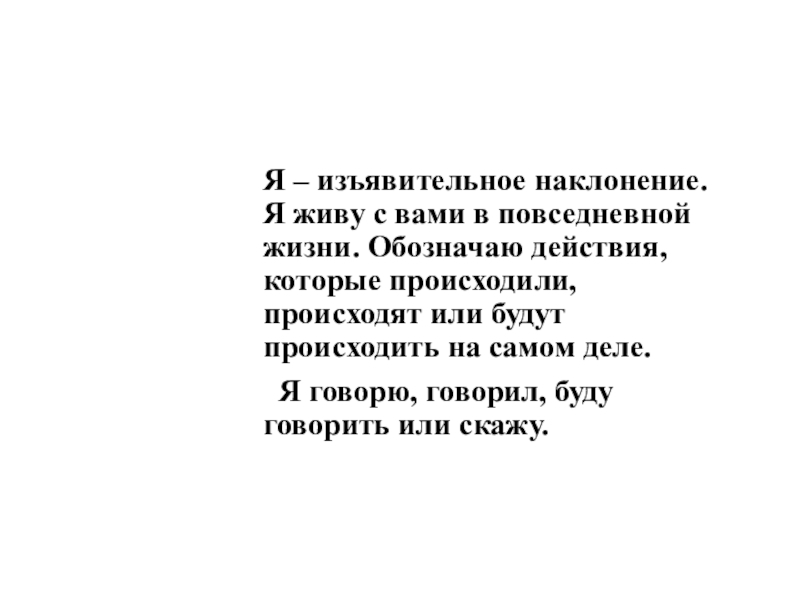 Таким образом, глаголы в изъявительном наклонении обозначают действия реальной действительности (как бы наяву), которые происходят, произошли или произойдут.