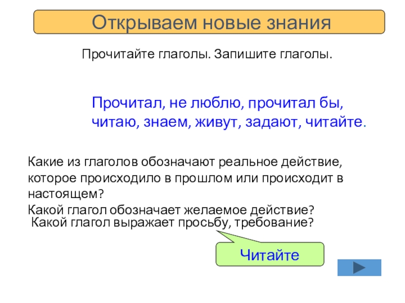 Какие из глаголов обозначают реальное действие, которое происходило в прошлом или происходит в настоящем?