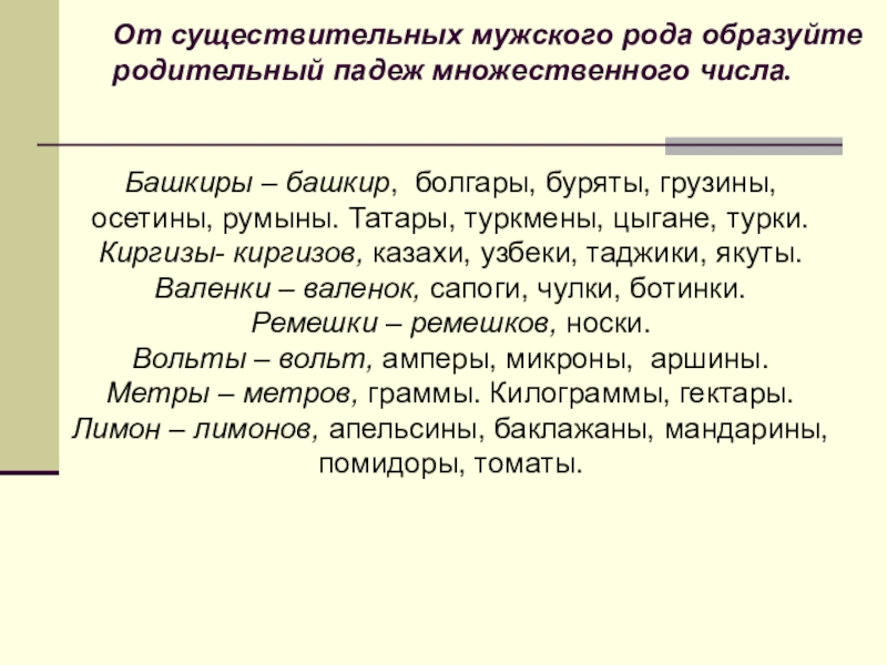 От существительных мужского рода образуйте родительный падеж множественного числа.