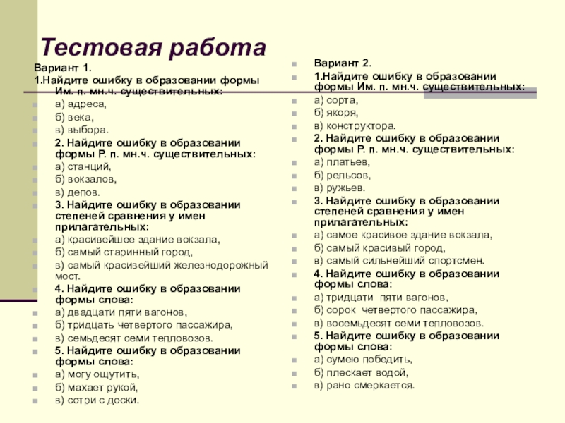 1.Найдите ошибку в образовании формы Им. п. мн.ч. существительных: