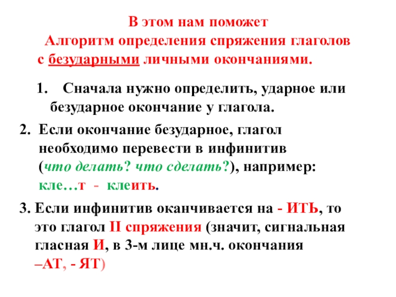 3. Если инфинитив оканчивается на - ИТЬ, то