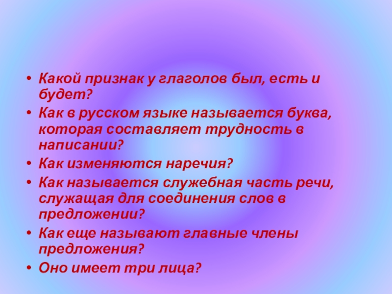 Слайд 5Какой признак у глаголов был, есть и будет?