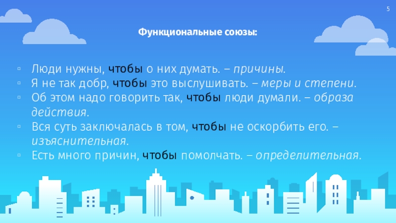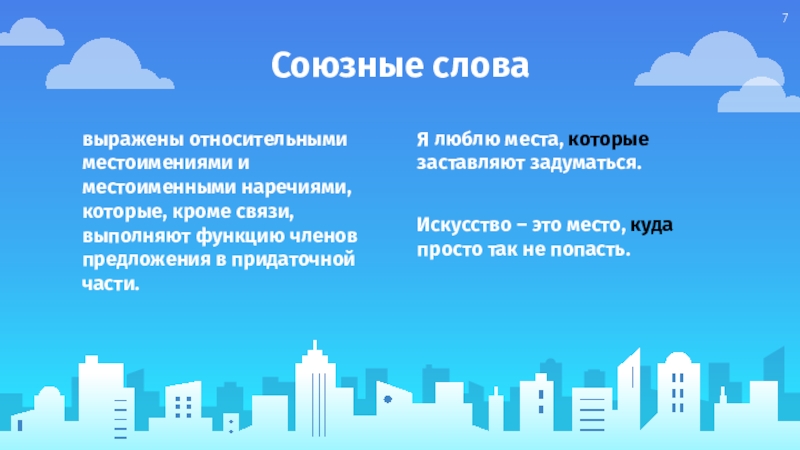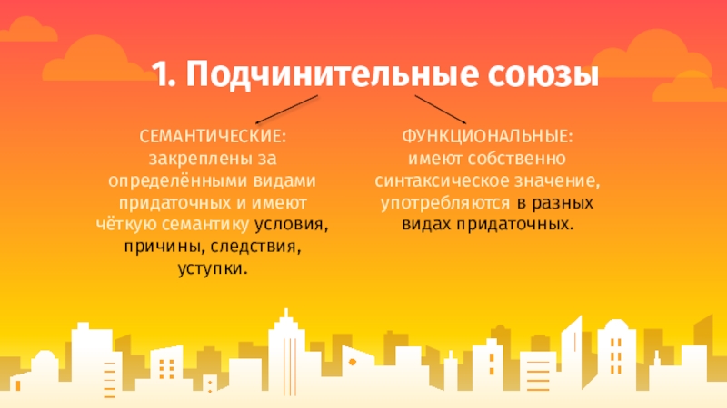 имеют собственно синтаксическое значение, употребляются в разных видах придаточных.