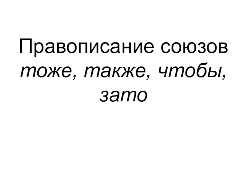 Презентация, доклад по русскому языку на тему Правописание союзов тоже, также, чтобы, зато (7 класс)