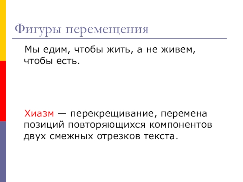 Хиазм — перекрещивание, перемена позиций повторяющихся компонентов двух смежных отрезков текста.