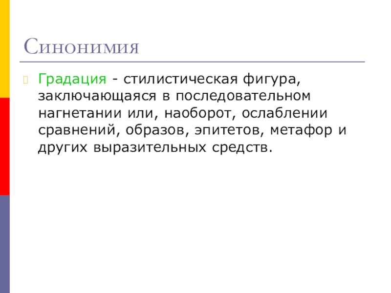 Градация - стилистическая фигура, заключающаяся в последовательном нагнетании или, наоборот, ослаблении