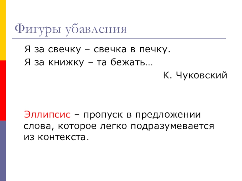 Эллипсис – пропуск в предложении слова, которое легко подразумевается из контекста.