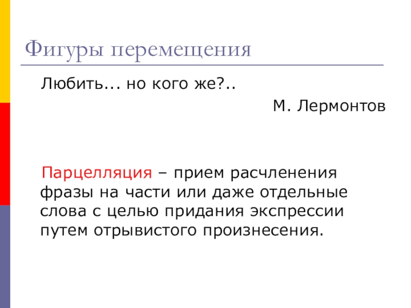 – прием расчленения фразы на части или даже отдельные слова с целью придания экспрессии путем отрывистого произнесения.