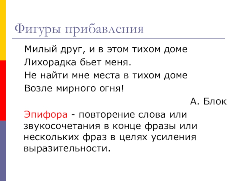 Эпифора - повторение слова или звукосочетания в конце фразы или нескольких фраз в целях усиления выразительности.
