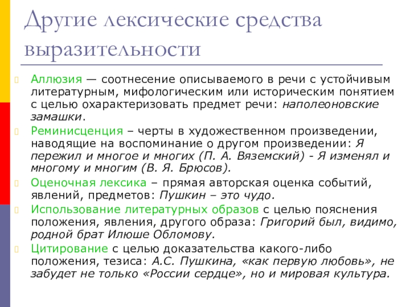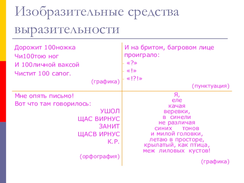 сравнений, образов, эпитетов, метафор и других выразительных средств.