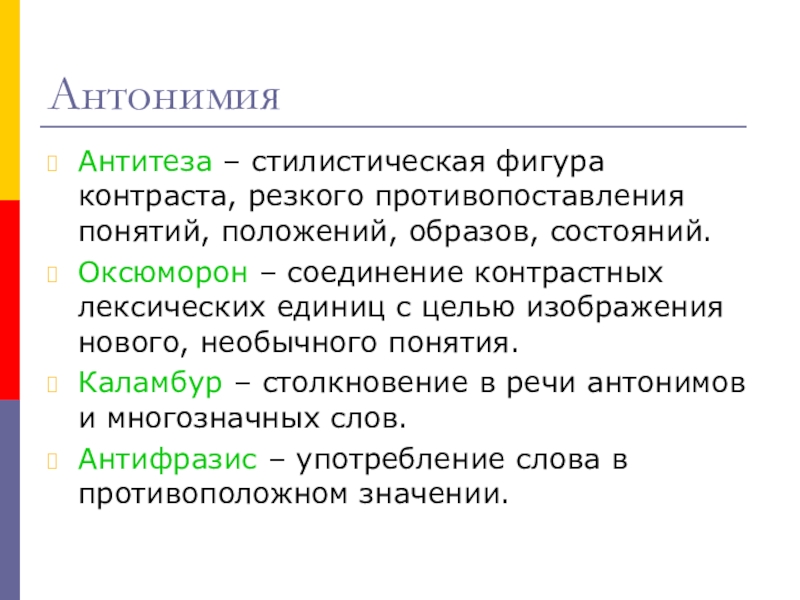Каламбур – столкновение в речи антонимов и многозначных слов.