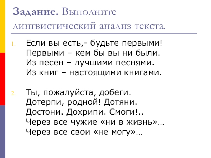 Слайд 44Задание. Выполните лингвистический анализ текста.