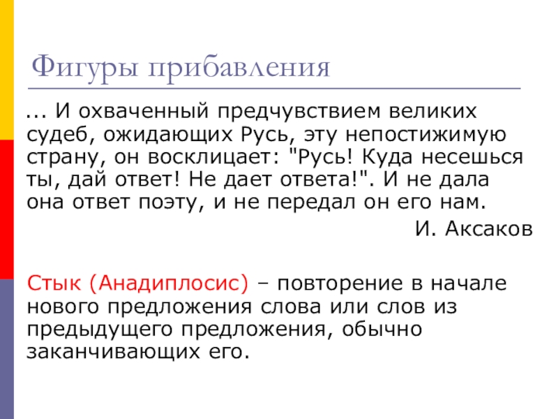 Стык (Анадиплосис) – повторение в начале нового предложения слова или слов из предыдущего предложения, обычно заканчивающих его.