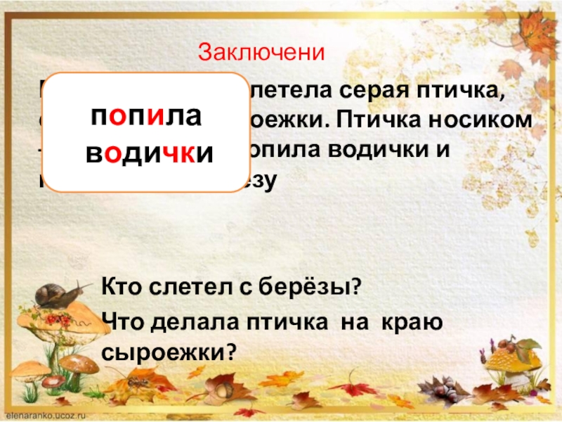 Пересказ текста (устный или письменный) с целью развития речи учащихся для проверки навыков построения предложений и правописания слов.
