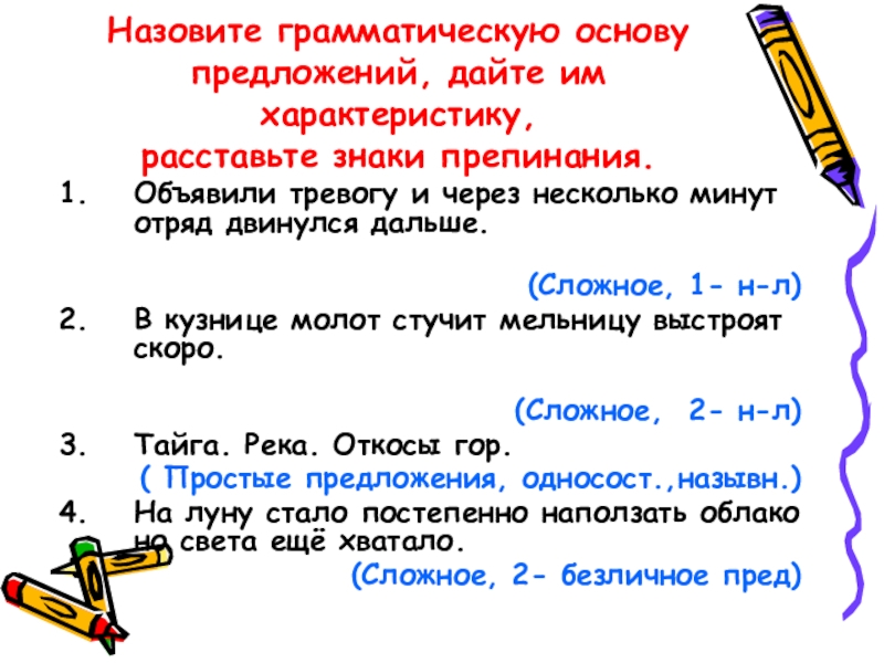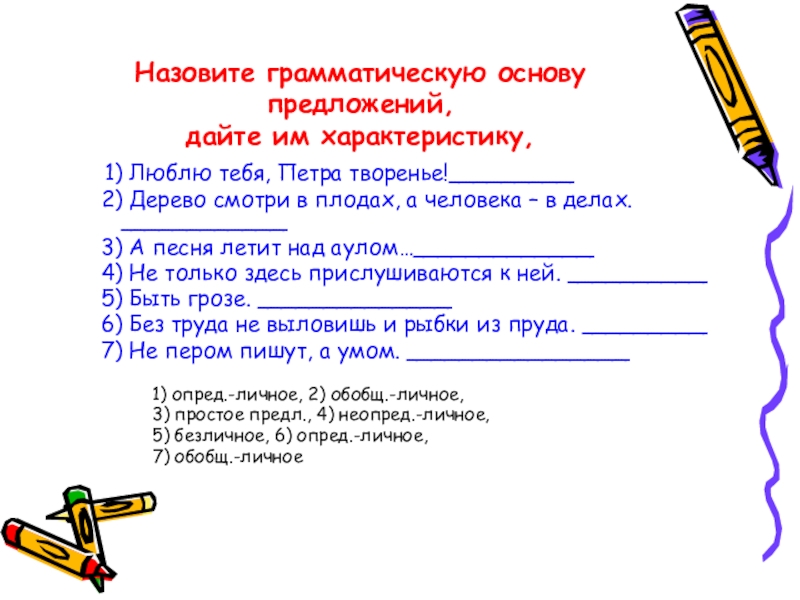 Назовите грамматическую основу предложений, дайте им характеристику,