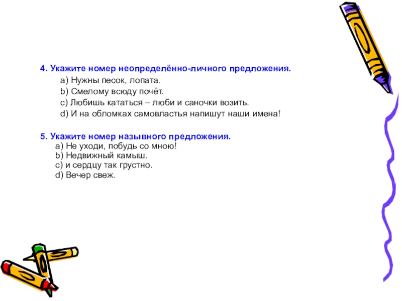 а) Назывные предложения имеют один главный член – подлежащее, которое может быть выражено: