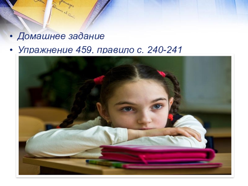 Домашнее заданиеУпражнение 459, правило с. 240-241