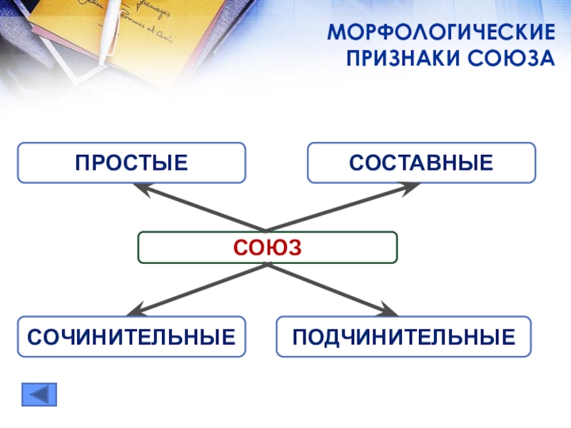 МОРФОЛОГИЧЕСКИЕ ПРИЗНАКИ СОЮЗАПОДЧИНИТЕЛЬНЫЕСОСТАВНЫЕСОЮЗПРОСТЫЕСОЧИНИТЕЛЬНЫЕ