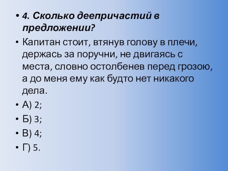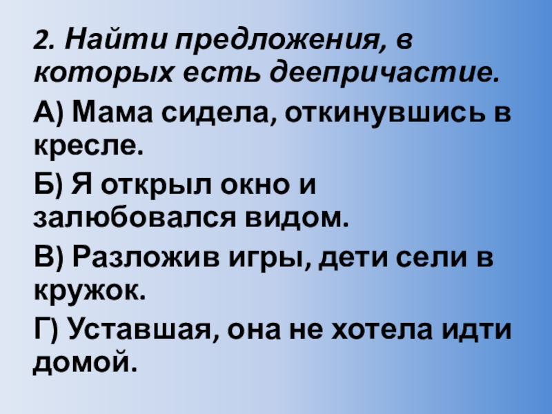 Слайд 62. Найти предложения, в которых есть деепричастие.