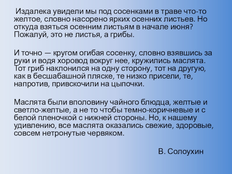 Слайд 2 Издалека увидели мы под сосенками в траве что-то желтое, словно