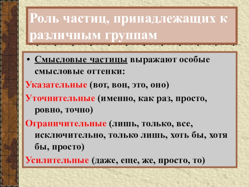 Смысл. оттенки НЕУЖЕЛИ, ИМЕННО, ЛИШЬ…
