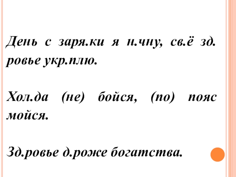 Слайд 3День с заря.ки я н.чну, св.ё зд.ровье укр.плю.