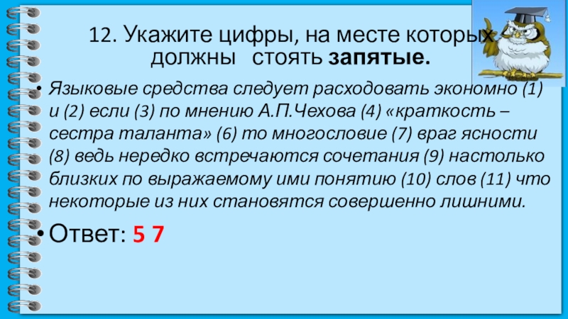 12. Укажите цифры, на месте которых должны стоять запятые.
