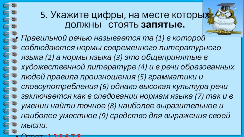 5. Укажите цифры, на месте которых должны стоять запятые.