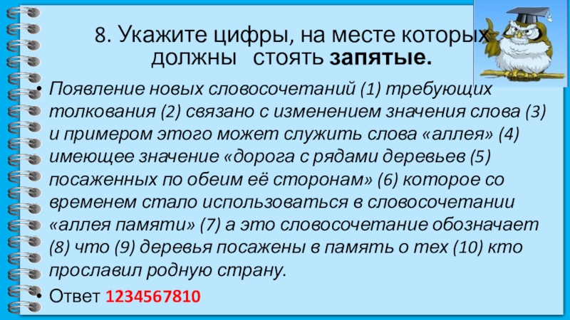 8. Укажите цифры, на месте которых должны стоять запятые.