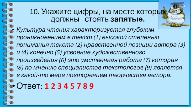 10. Укажите цифры, на месте которых должны стоять запятые.