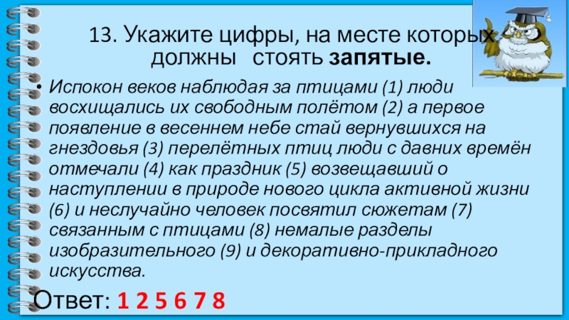 13. Укажите цифры, на месте которых должны стоять запятые.