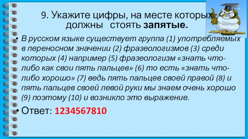 9. Укажите цифры, на месте которых должны стоять запятые.