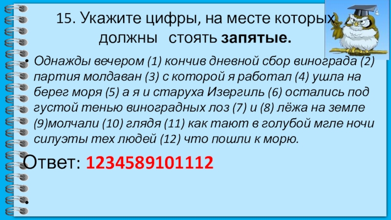 15. Укажите цифры, на месте которых должны стоять запятые.