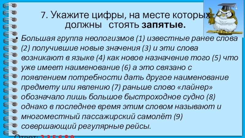 7. Укажите цифры, на месте которых должны стоять запятые.
