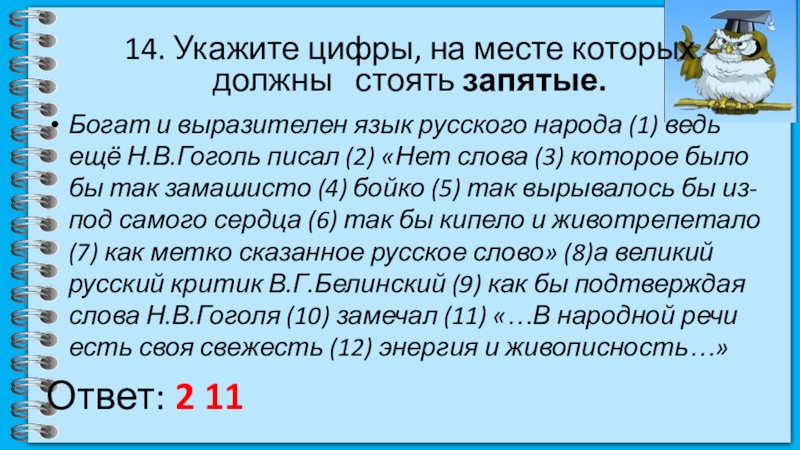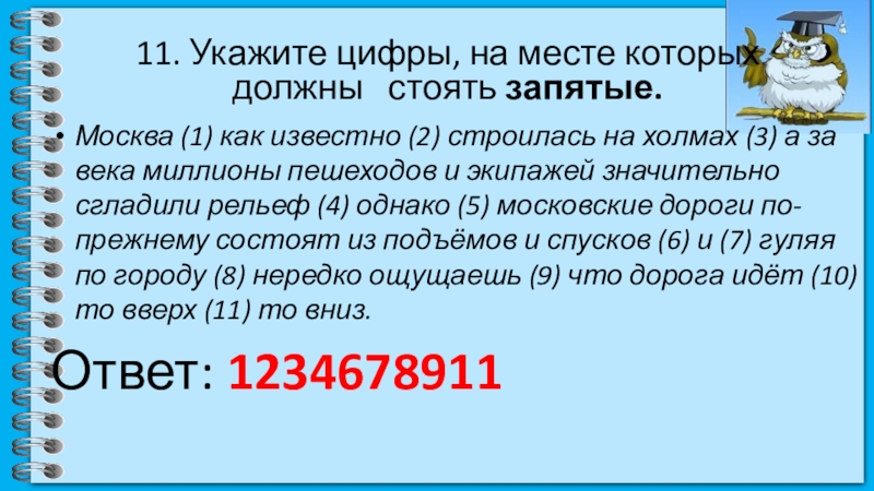 11. Укажите цифры, на месте которых должны стоять запятые.