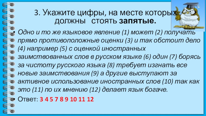 3. Укажите цифры, на месте которых должны стоять запятые.